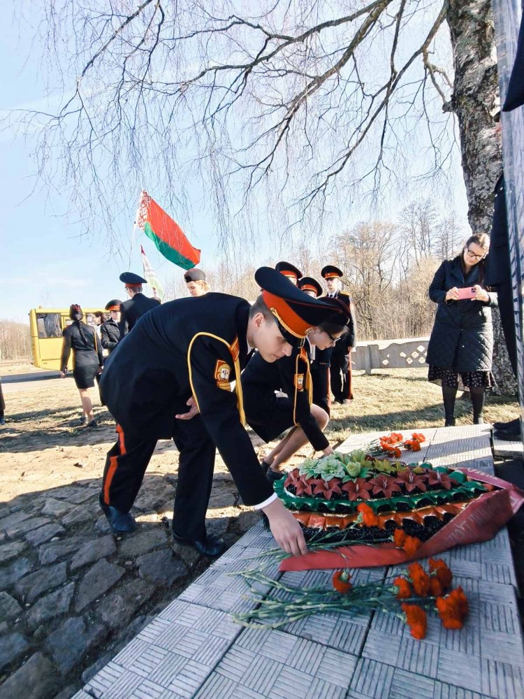 22 марта 2026 года воспитанники Борисовского кадетского училища Минской области приняли участие в Акции памяти «Приди и поклонись» — почтили память погибших мирных жителей деревень Борисовского района, которые разделили судьбу Хатыни. Участие молодых патриотов в памятных акциях подчёркивает неразрывную связь времён и важность сохранения исторической правды для будущих поколений.