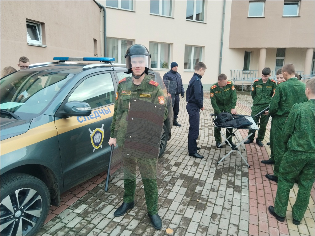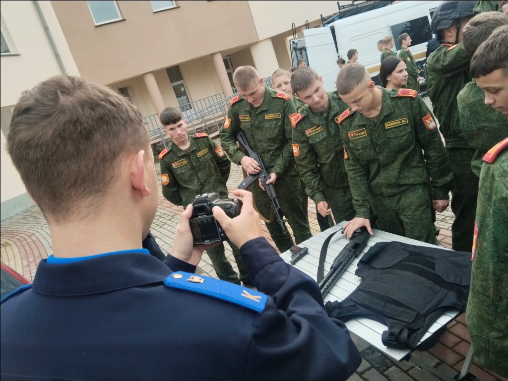 Бусел В.В., полковник юстиции, начальник Борисовского РОСК выступил с приветственным словом перед кадетами, рассказал о своей профессиональной деятельности. На встрече присутствовали и курсанты следственно-экспертного факультета Академии МВД, которые поделились тем, как поступить в учреждения высшего образования для последующего прохождения службы в подразделениях следственного комитета. Кадеты также ознакомились с работой криминалистической мобильной лабораторией, оружием и спецсредствами, стоящими на вооружении Следственного коми