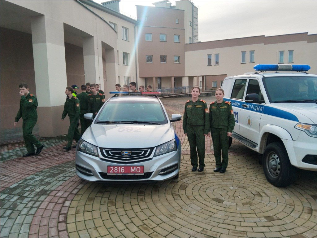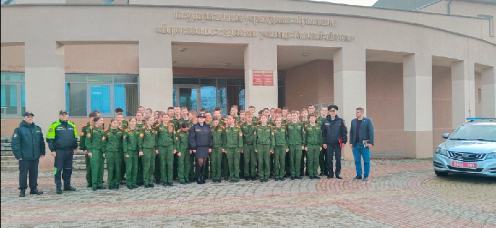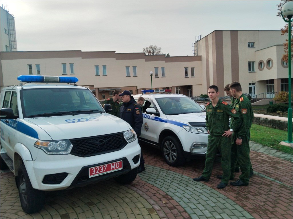 30 октября в Борисовском кадетском училище состоялось профориентационное мероприятие с участием представителей Борисовского РУВД, Крупского РОВД. О перспективах службы, поступления в Академию МВД кадетам рассказали старший инспектор группы кадров Борисовского РУВД майор милиции Альшевский И.Л., заместитель начальника ОНиПТЛ Борисовского РУВД майор милиции Щеглов С.А. , заместитель начальника по идеологической работе и кадровому обеспечению Крупского РОВД подполковник милиции Гайдук А.С., старший инспектор группы кадров Крупского РОВД майор милиции Карецкий А.Н. Были продемонстрированы служебные машины ГАИ, специальное оборудование и многое другое.