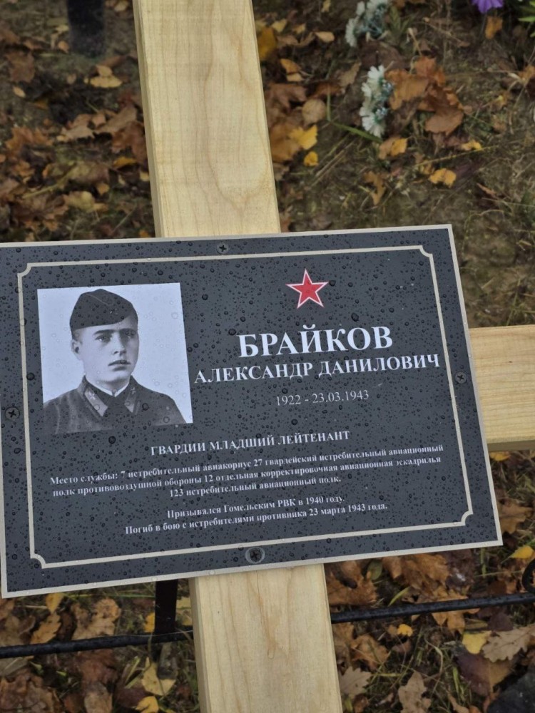 28 октября на Московском кладбище города Ветки состоялась церемония перезахоронения гвардии младшего лейтенанта Александра Даниловича Брайкова. Время отвело ему короткий жизненный путь в 21 год. Но стараниями поисковиков, родственников, земляков герой шагнул в бессмертие и упокоился на родной Ветковщине. Останки в Ветку доставили участники поисковых отрядов России.