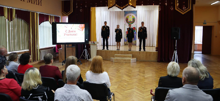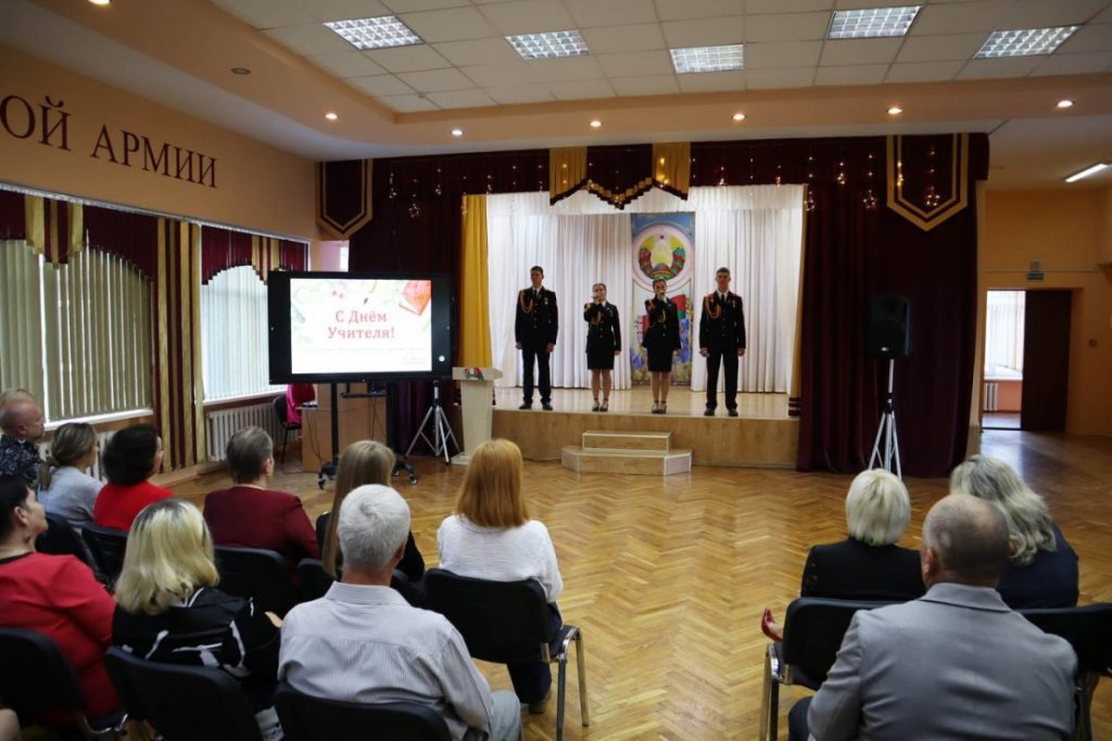 3 октября в Гродненском областном кадетском училище состоялся праздничный концерт, посвящённый Дню учителя. Кадеты подготовили разнообразные творческие номера, порадовав педагогов музыкальными, хореографическими и театральными талантами. На мероприятии были вручены грамоты заслуженным педагогам от Поречского сельского совета депутатов.