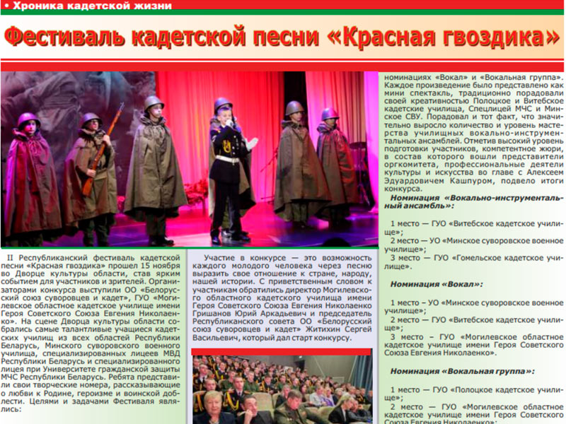 — Вести из училищ и лицеев — новости из Минского СВУ, кадетских училищ и специализированных лицеев всех регионов страны;
