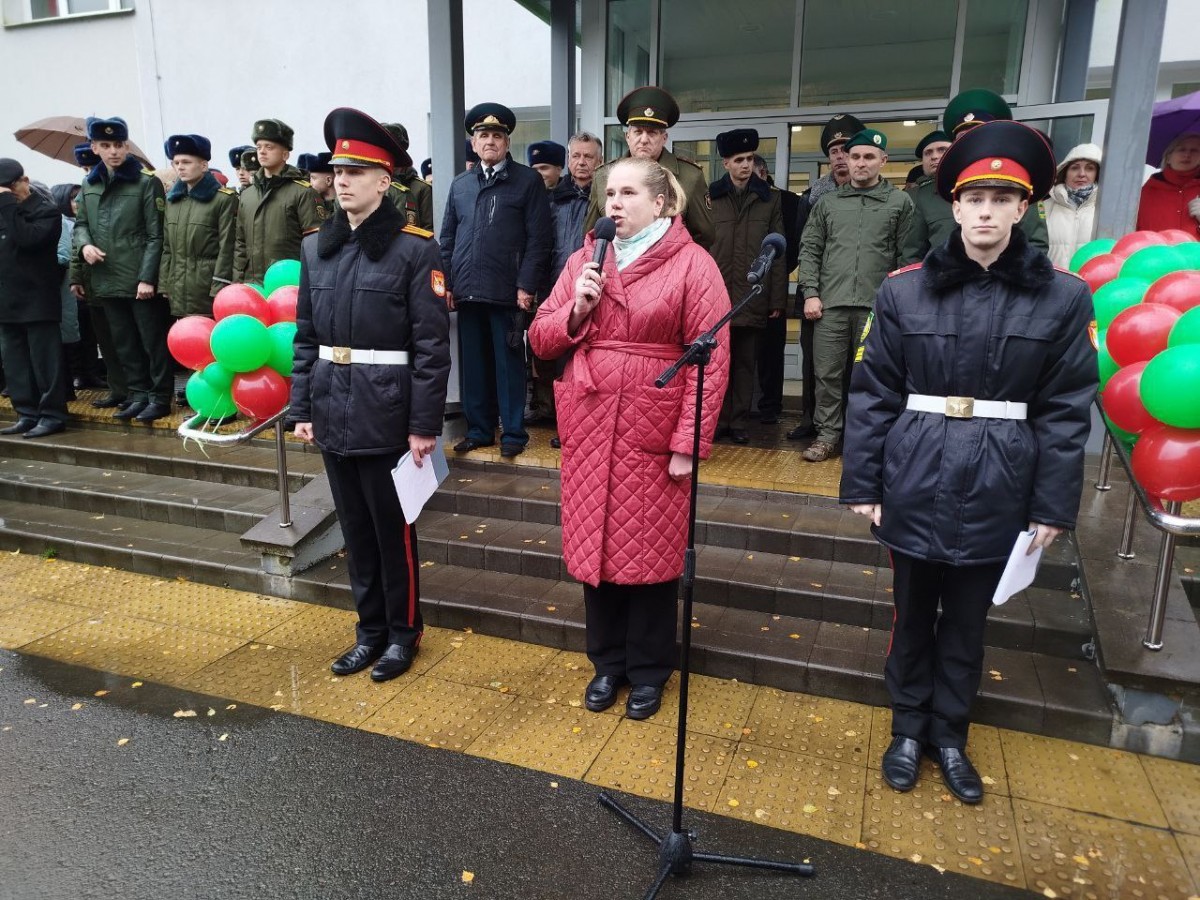 С напутственным словом к кадетам и поздравлением обратился управляющий делами администрации Первомайского района г. Минска — Садовская Кристина Юрьевна.