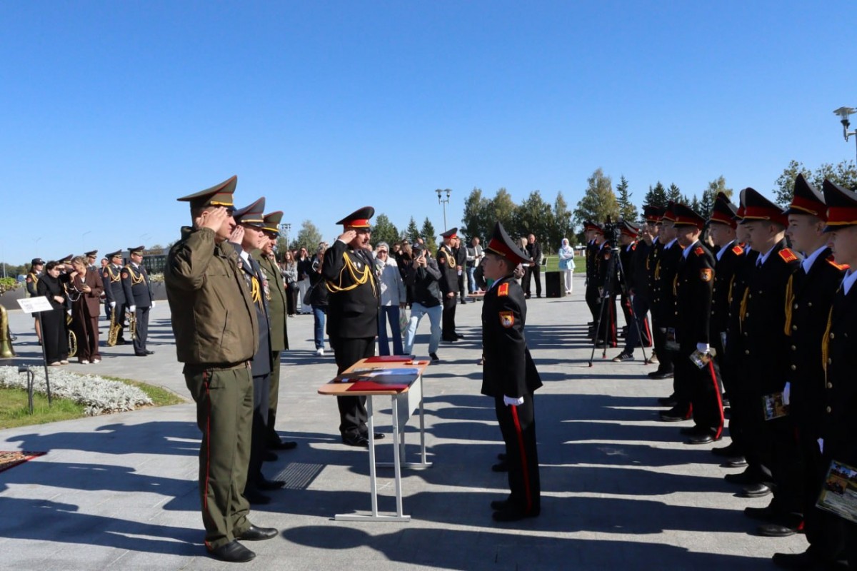 Приведение к кадетской Присяге состоялось на героическом месте доблести и славы, месте, где пролита кровь наших предков, мужественно сражавшихся с немецко-фашистскими захватчиками в годы Великой Отечественной войны за свободу и независимость Родины.