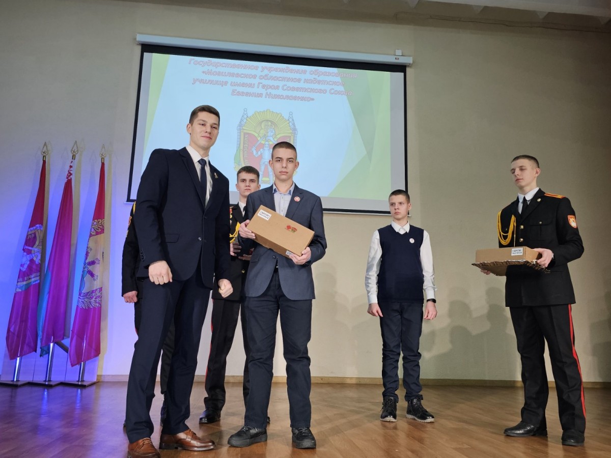Сегодня в Могилевском областном кадетском училище имени Героя Советского Союза Евгения Николаенко прошло торжественное мероприятие, посвященное вступлению учащихся в ряды Общественного объединения «БРСМ». В ходе мероприятия были вручены членские билеты и значки кадетам и школьникам из двух школ Могилева — № 25 и № 35.